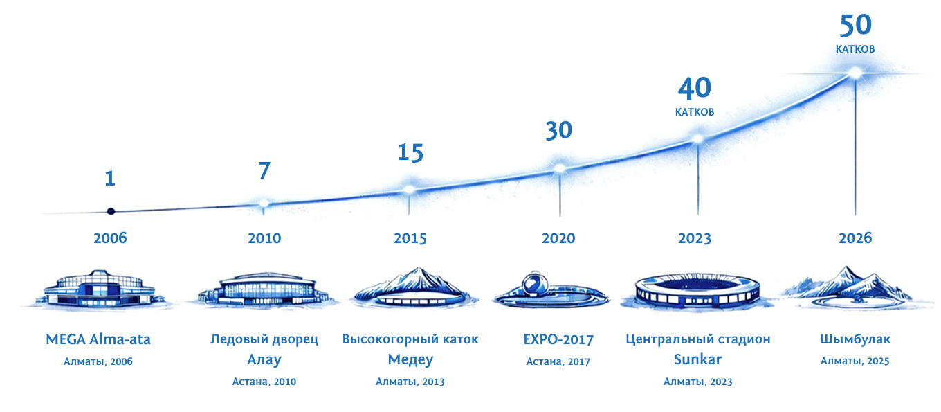 Мы, команда профессионалов, специализирующихся на проектировании, строительстве, обслуживании и развитии ледовых катков. Предлагаем полный цикл услуг: от разработки концепции до ввода объекта в эксплуатацию, а также продажу и аренду оборудования для катков. Наши проекты реализуются не только в Казахстане, и странах СНГ, но и за рубежом.